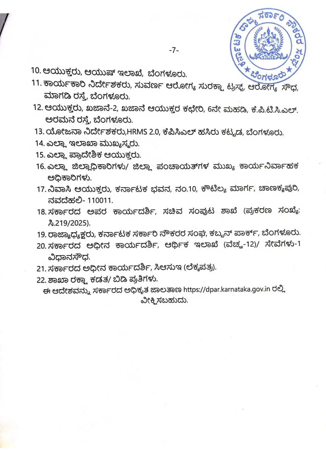 ಪ್ರಸ್ತಾವನೆಯಲ್ಲಿ ವಿವರಿಸಿರುವ ಅಂಶಗಳ ಹಿನ್ನೆಲೆಯಲ್ಲಿ ಪರಿಶೀಲಿಸಿ, 'ಕರ್ನಾಟಕ ಆರೋಗ್ಯ ಸಂಜೀವಿನಿ ಯೋಜನೆ'ಯು (KASS) ಅಕ್ಟೋಬರ್ 01, 2025 ರಿಂದ ಜಾರಿಗೆ ಬರುವಂತೆ ಆದೇಶಿಸಿದೆ.